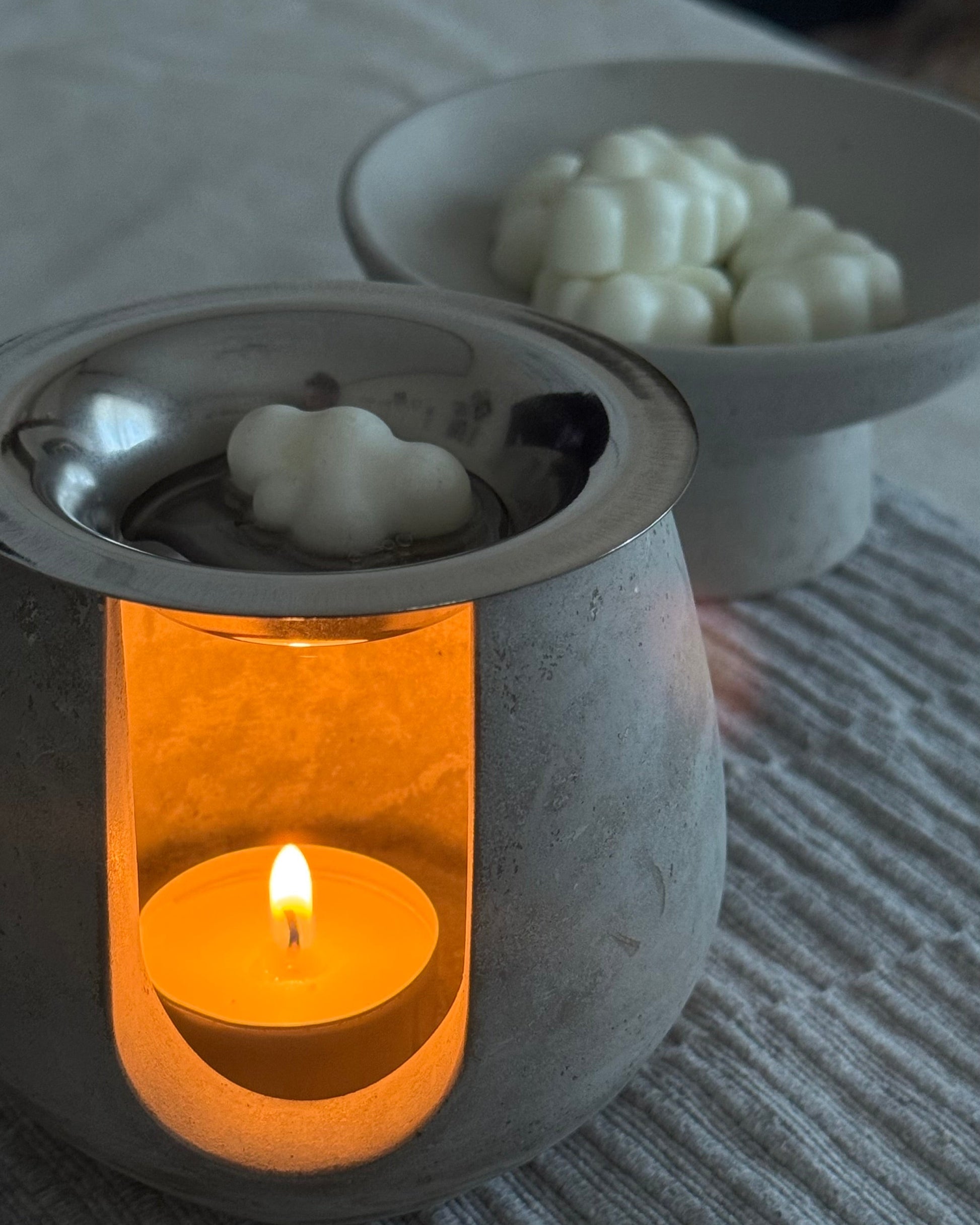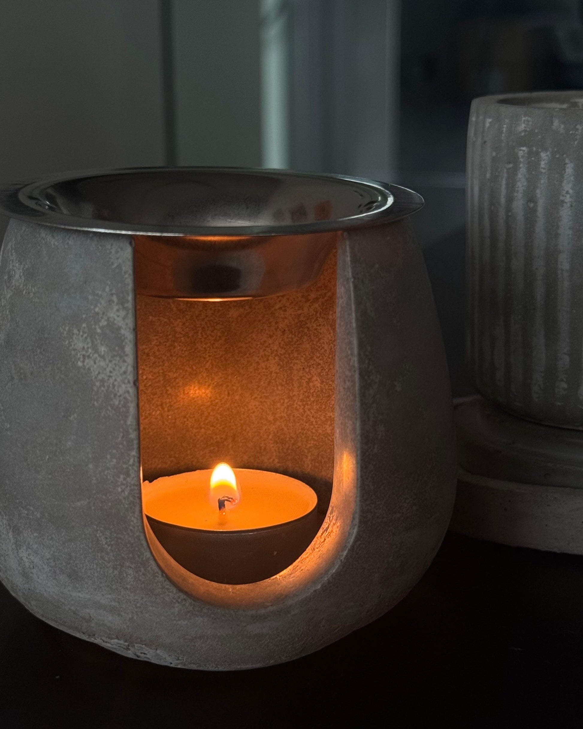 Inspired by volcanic textures, this candle features a unique concrete vessel and is available in Althea’s signature scent collection.