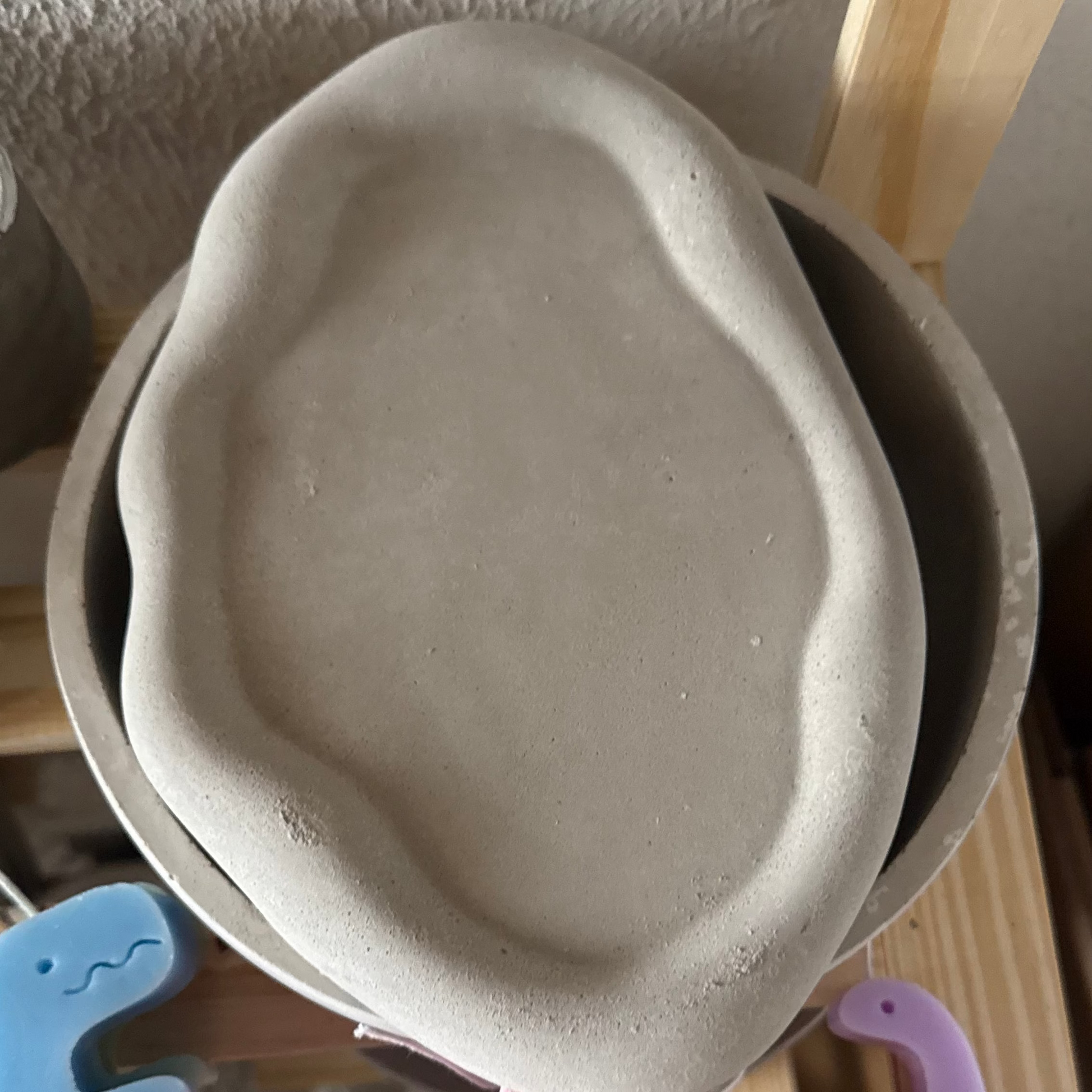 Οβάλ δίσκος με καμπυλωτές άκρες, χειροποίητος από τσιμέντο. Ισορροπημένο design για κοσμήματα, diffusers ή διακοσμητικά κεριά. Συνολικό βάρος 395γρ.